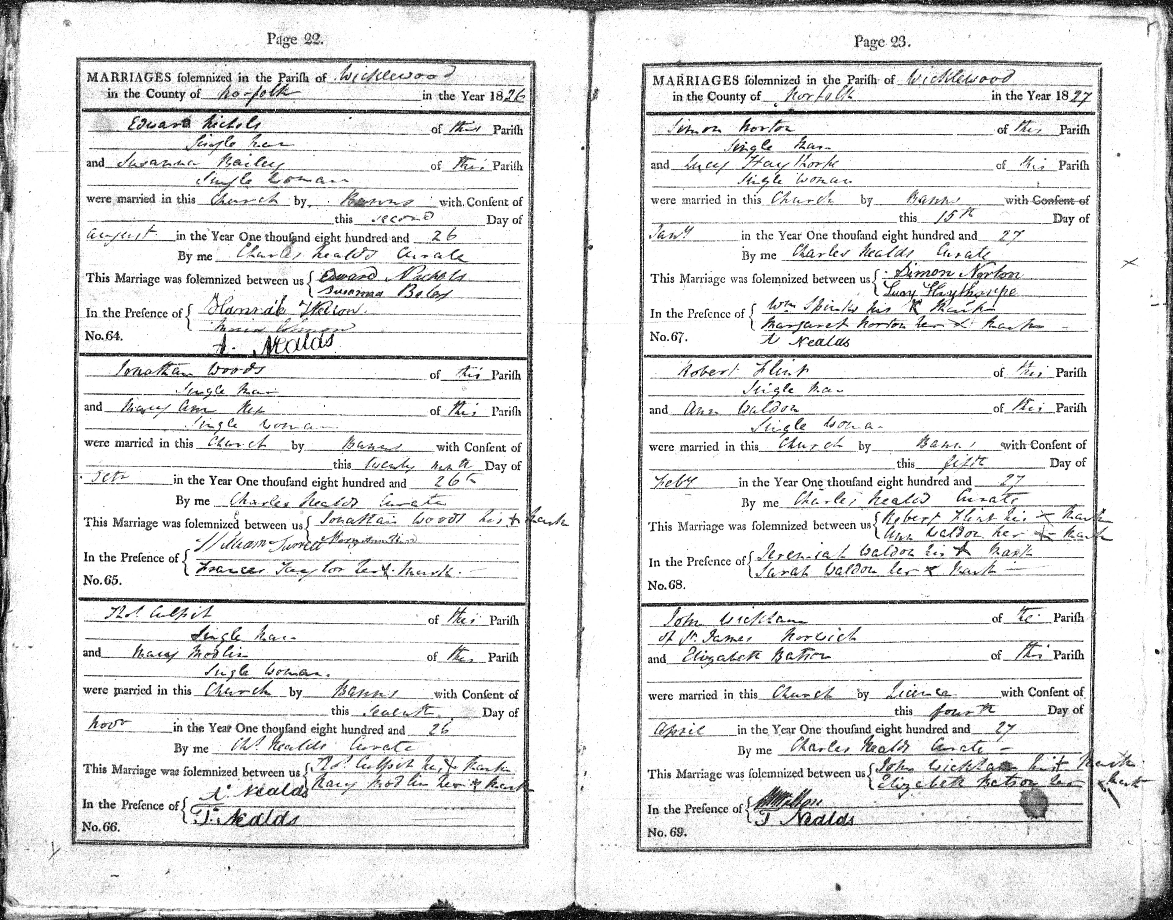 Married Susanna BAILEY in Wicklewood, Norfolk Groom's Name: Edward Nichols |
